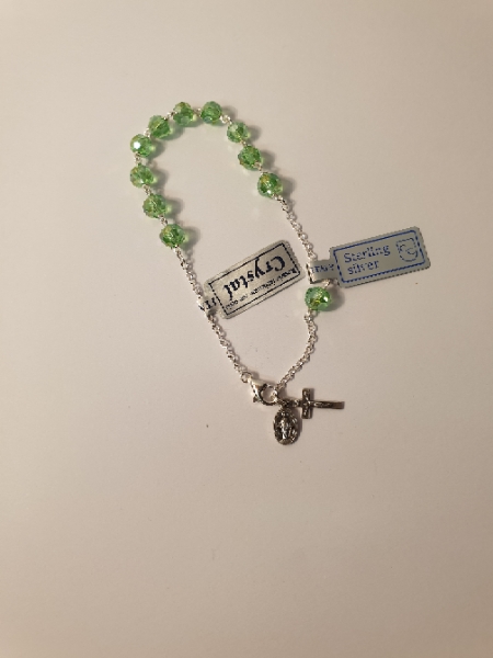 Bracciale in argento 925, grani in cristallo, con medaglia della Madonna Miracolosa