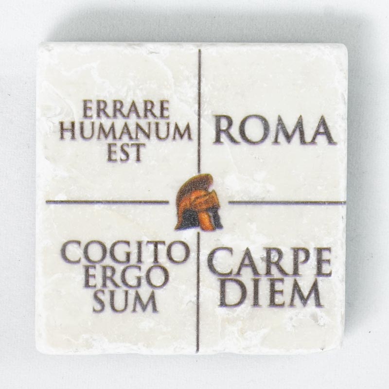 Calamita in vero marmo italiano, souvenir ricordo di Roma, a forma quadrata con 3 scritte in latino