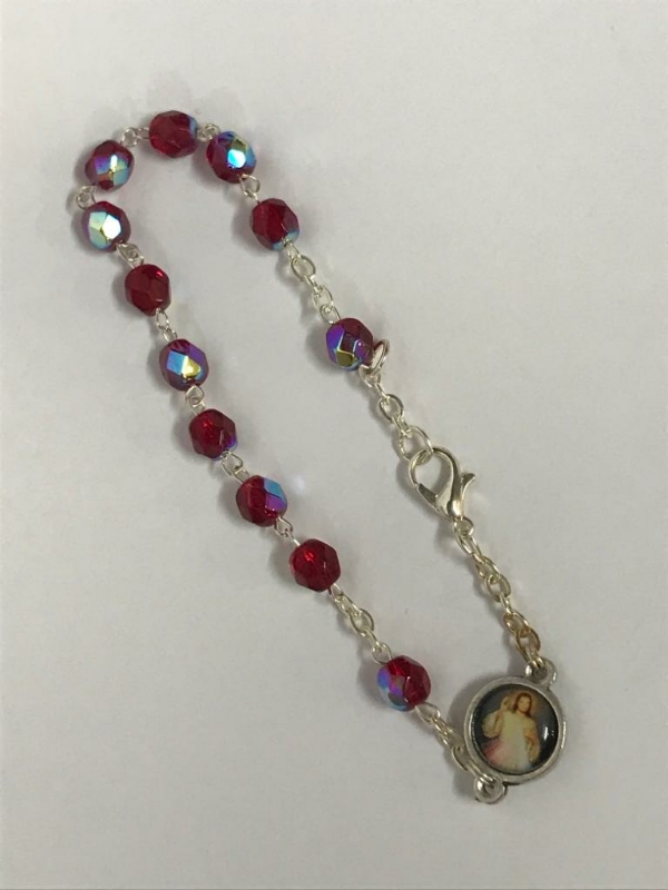 Crystal rosary bracelet with the image of the Miraculous Madonna