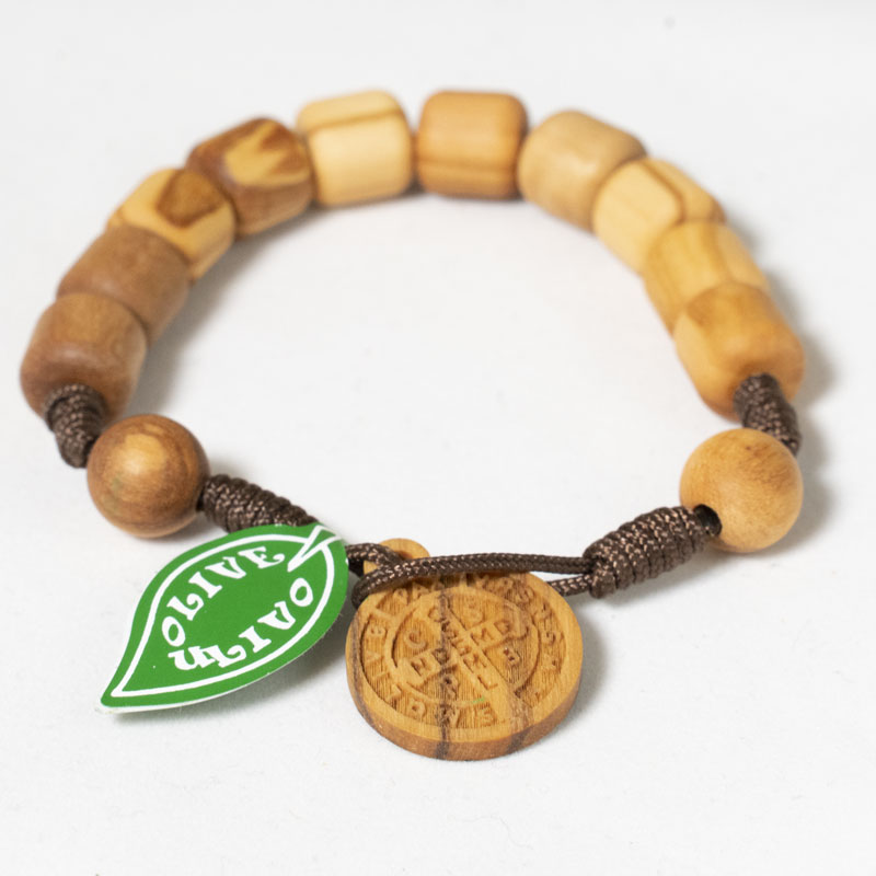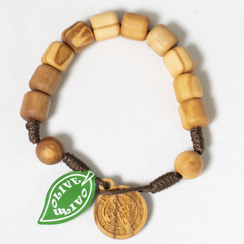 Decina di San Benedetto in legno di ulivo nazionale con grani da 10mm e medaglia in legno di ulivo nazionale di San Benedetto