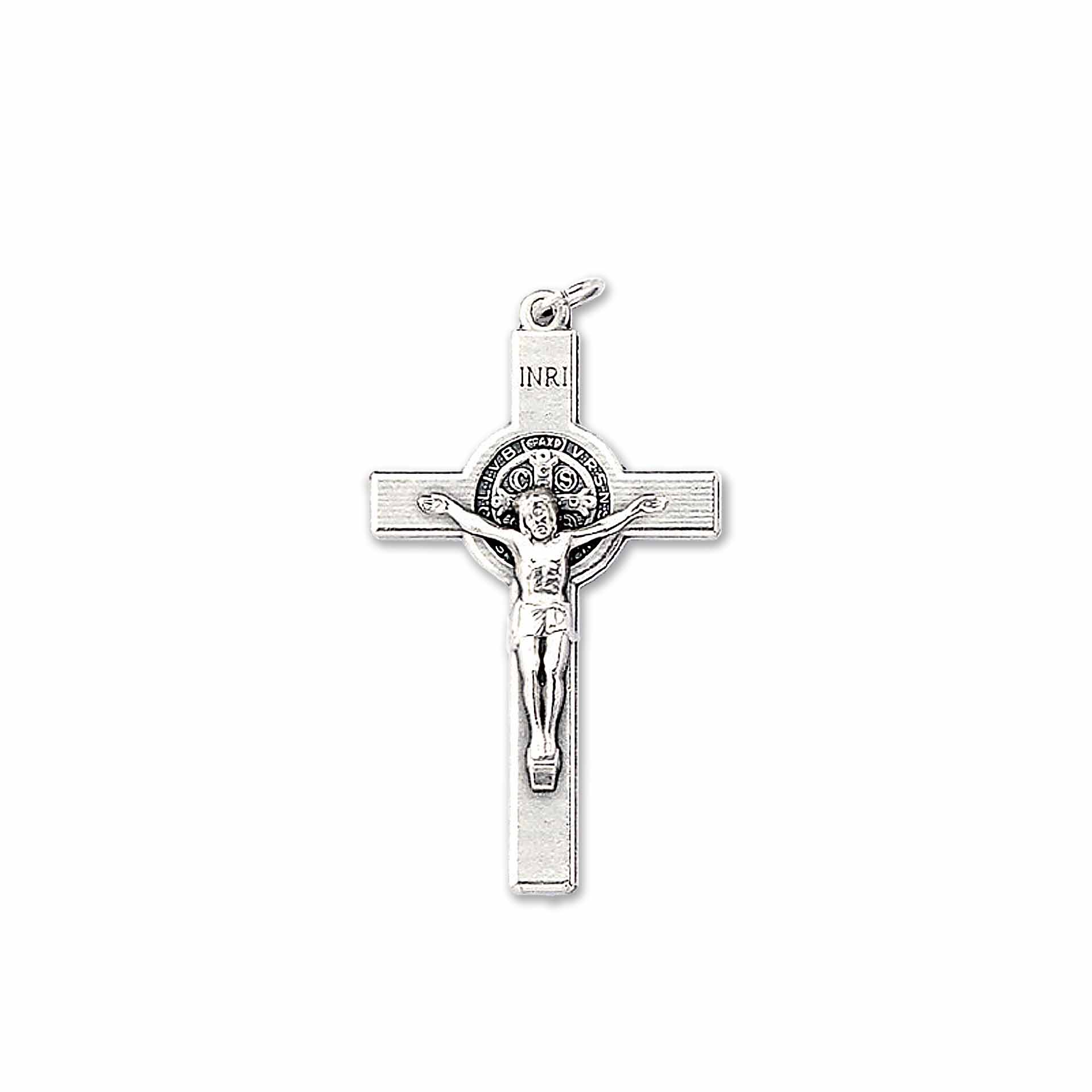 Il design della Croce di San Benedetto è caratterizzato da diversi elementi iconografici, che includono l’immagine di San Benedetto, uno dei padri del monachesimo occidentale, e il famoso motto “Pax”, che simbolizza la pace. La croce è adornata da frasi latine incise, tra cui “Eius in obitu nostro praesidium” (Nel suo trapasso, ci sia aiuto) e “Vade retro Satana” (Vattene indietro, Satana), che sottolineano la protezione divina contro le forze del male. Queste iscrizioni non solo arricchiscono il valore spirituale dell’oggetto, ma fungono anche da invocazione continua a Dio nella vita quotidiana.