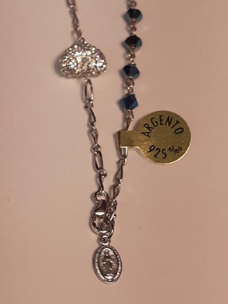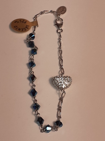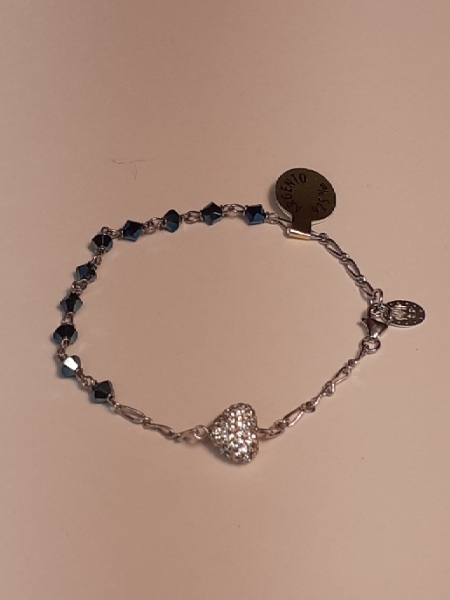 Silver 925 bracelet and Swarovski blue cristals with heart -shaped medal in Swarovski cristals