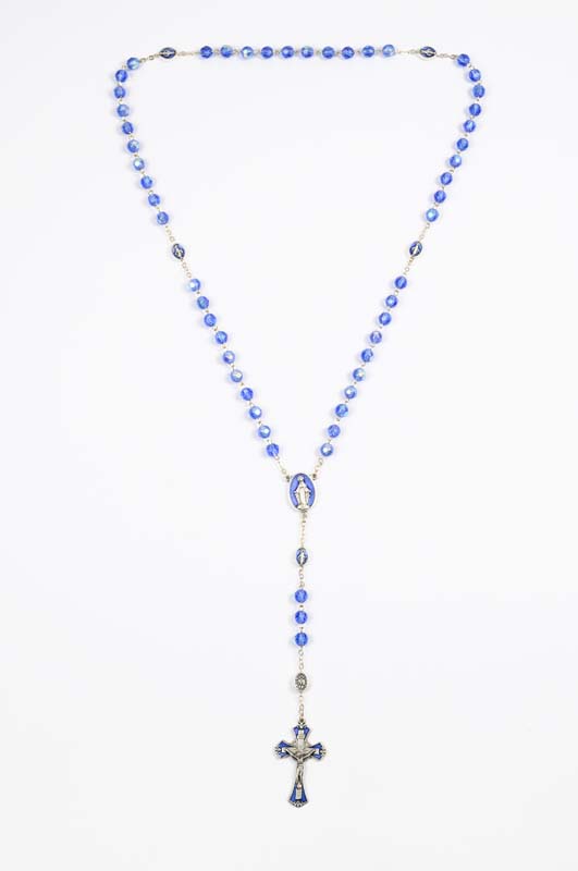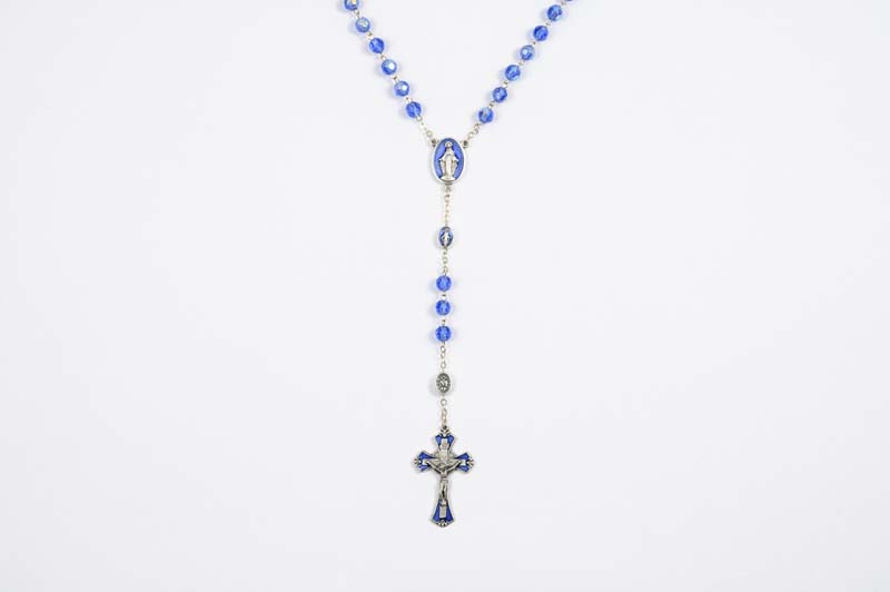 Blue cristal rosary with Miraculous medal, 5 mm beads