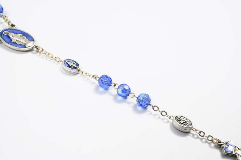 Blue cristal rosary with Miraculous medal
