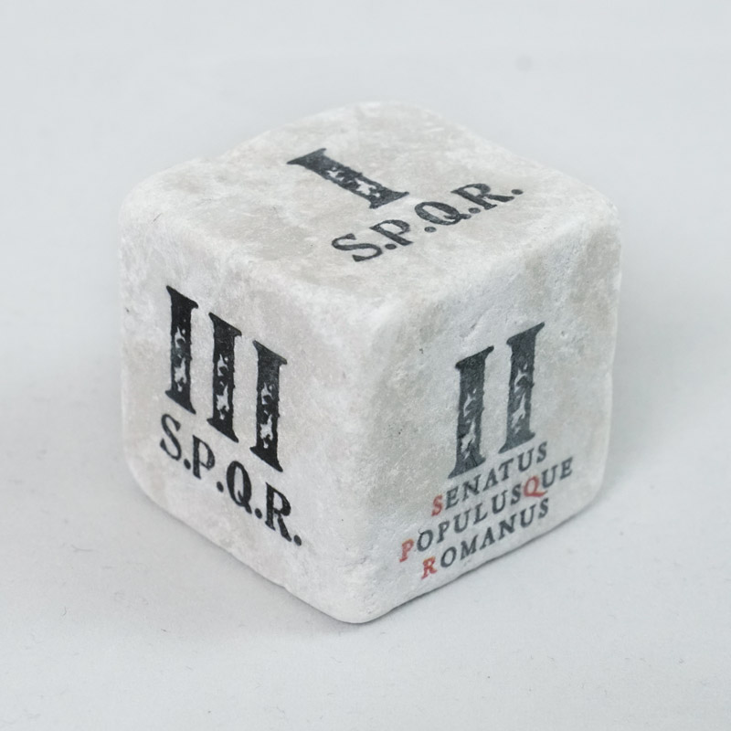Dado in marmo italiano, souvenir di Roma, con numeri romani sulle facce
