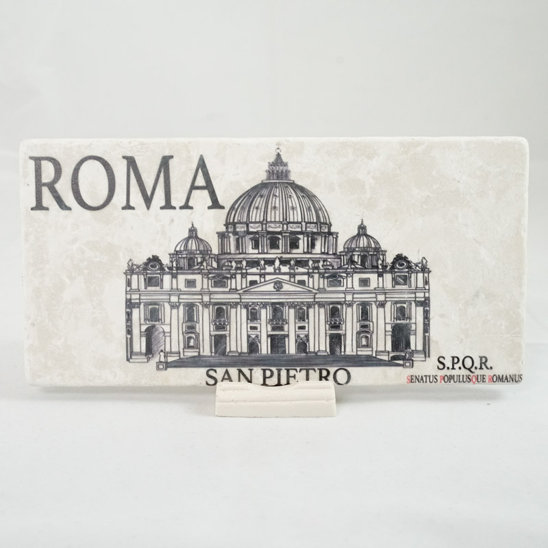 Targa in marmo lavorata a mano, souvenir ricordo di Roma, raffigurante la Basilica di San Pietro, con supporto