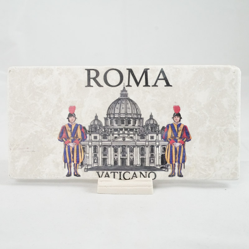 Targa in marmo lavorata a mano, souvenir ricordo di Roma, raffigurante la Basilica di San Pietro, con supporto