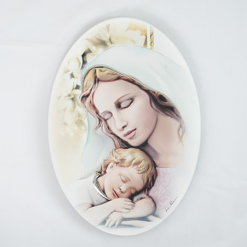 Quadro d’autore, realizzato dall’artista di talento Luigi Pesaresi, prodotto in legno arricchito da rilievi argentati, raffigurante Madonna con Bambino