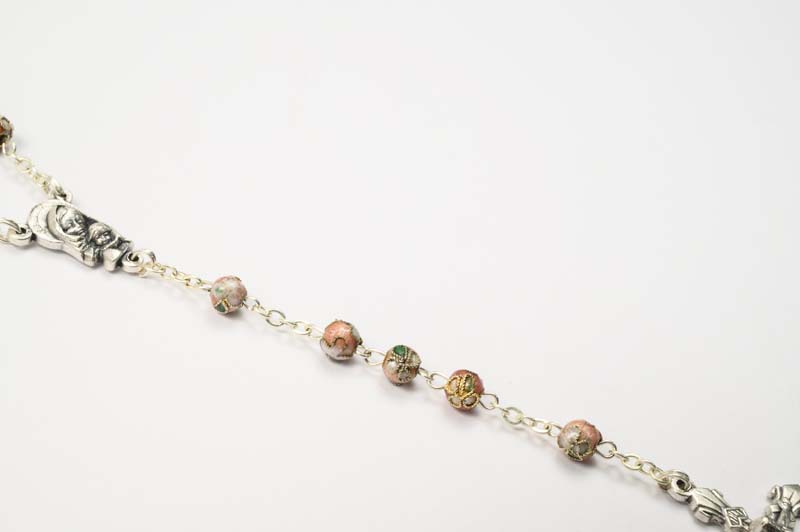 Rosario cloisonne’ rosa con medaglia Madonna con Bambino