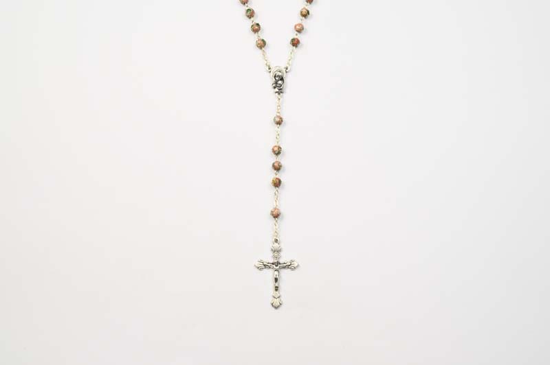 Rosario cloisonne’ rosa con medaglia Madonna con Bambino,grani da 3 mm