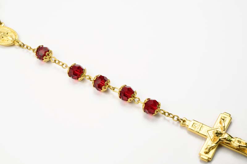 Rosario in cristallo rosso dorato grani da 8mm