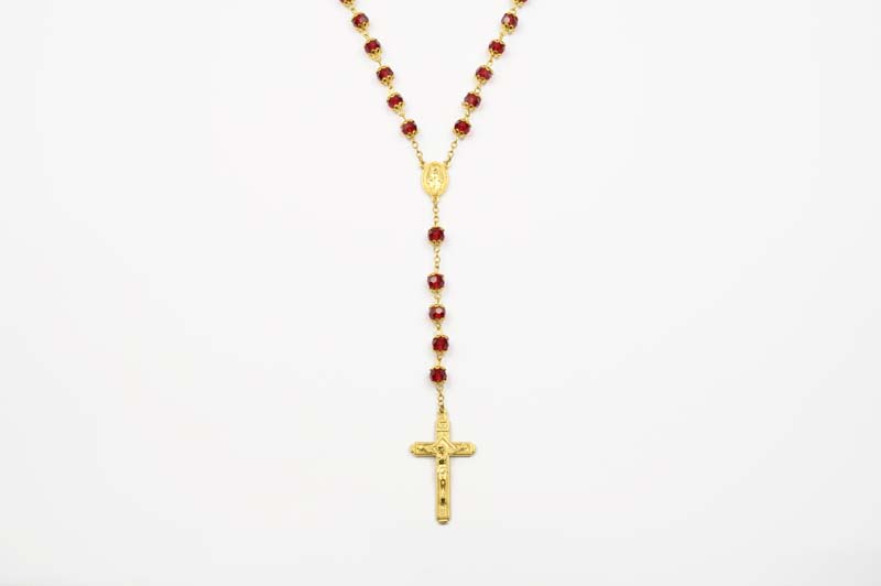 Rosario in cristallo rosso dorato
