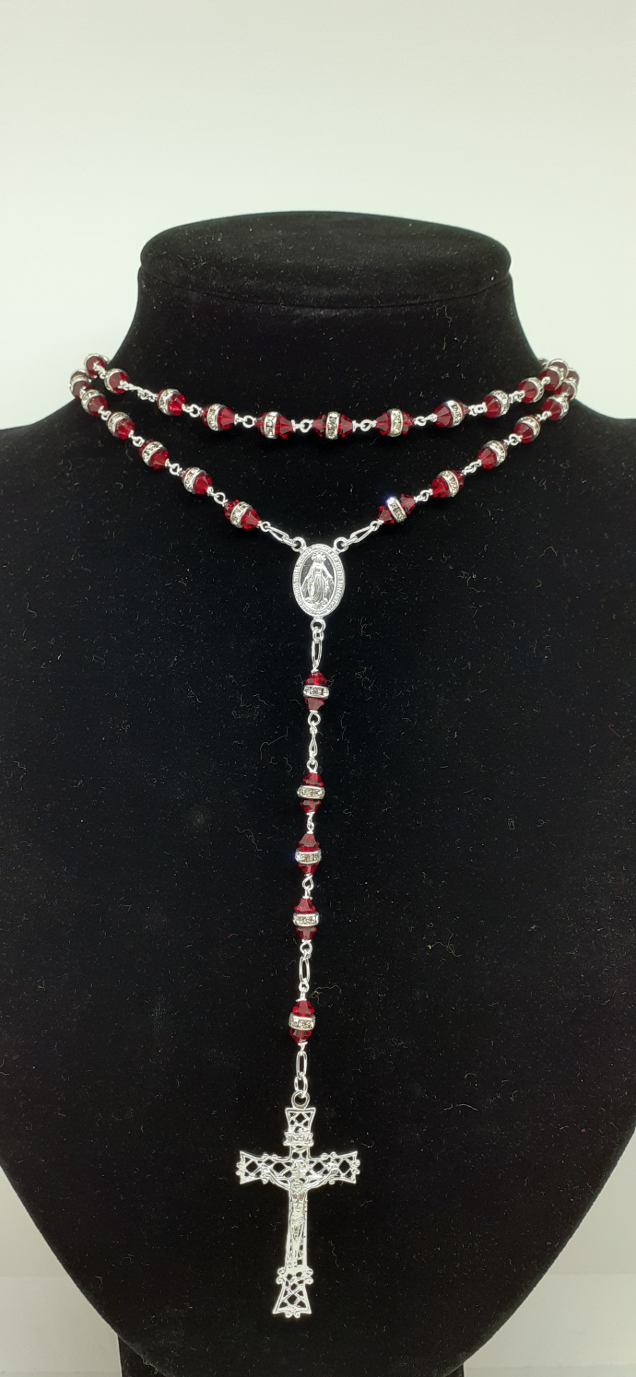 Rosario in argento con cristalli di Swarovski e medaglia della Madonna Miracolosa