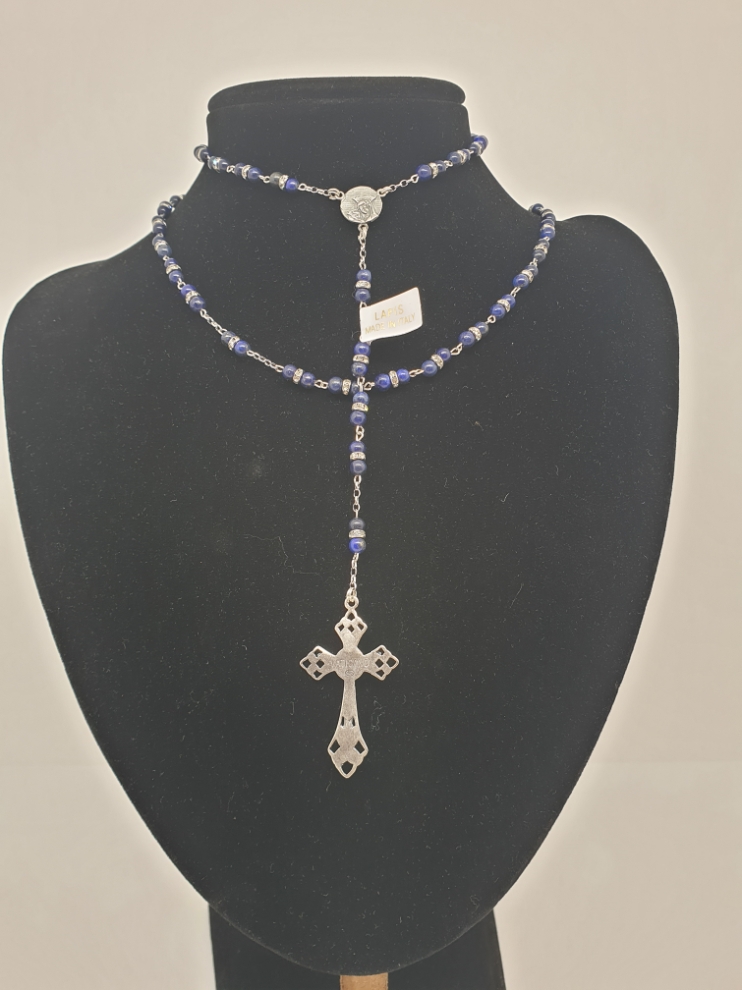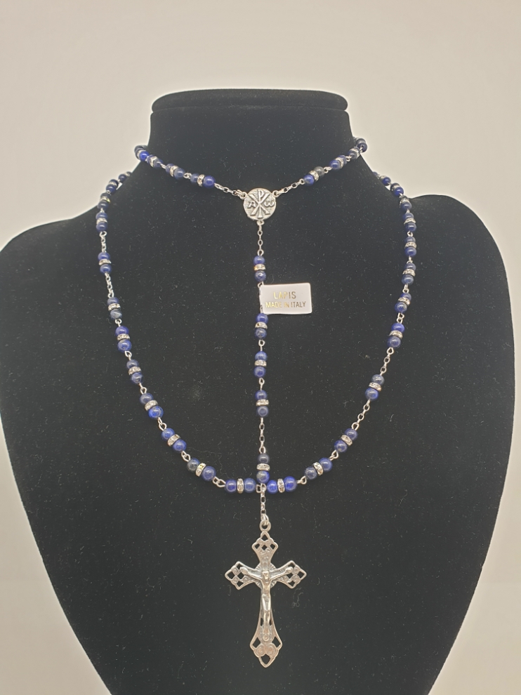 Rosario in argento è Lapislazzuli e cristalli in swarovski con medaglia della pace/Madonna della Salute
