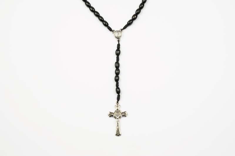 Rosario in legno nero con croce e medaglia di San Benedetto