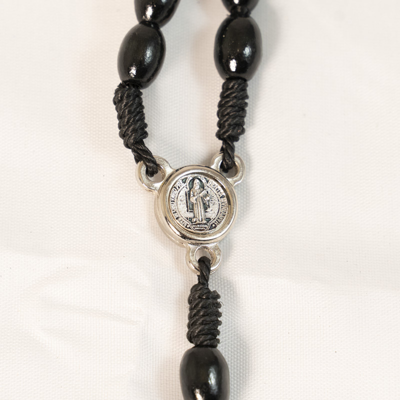 Rosario San Benedetto grani ovali in legno color nero di 10x7mm