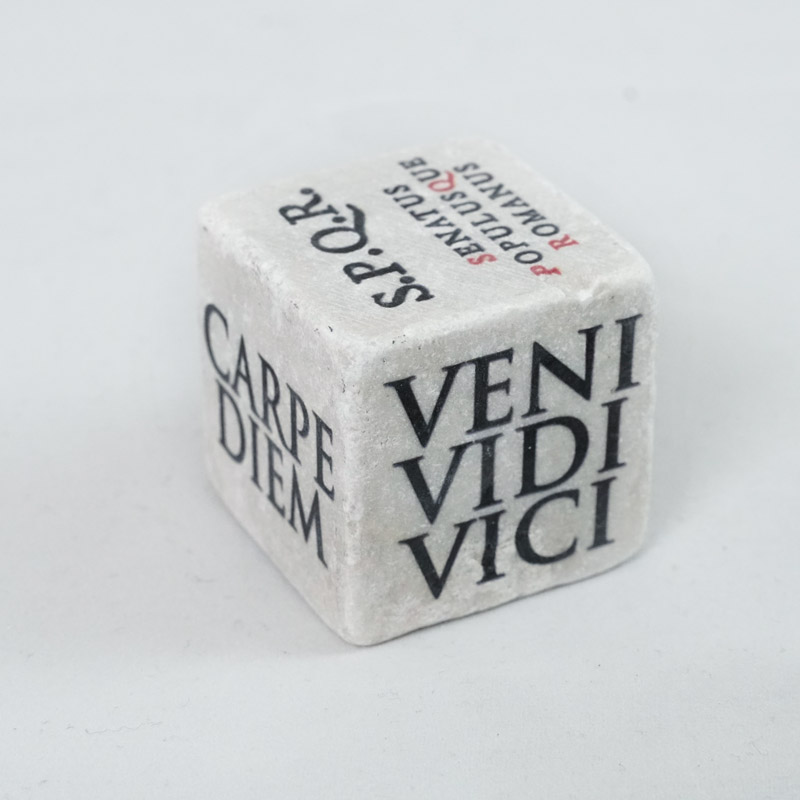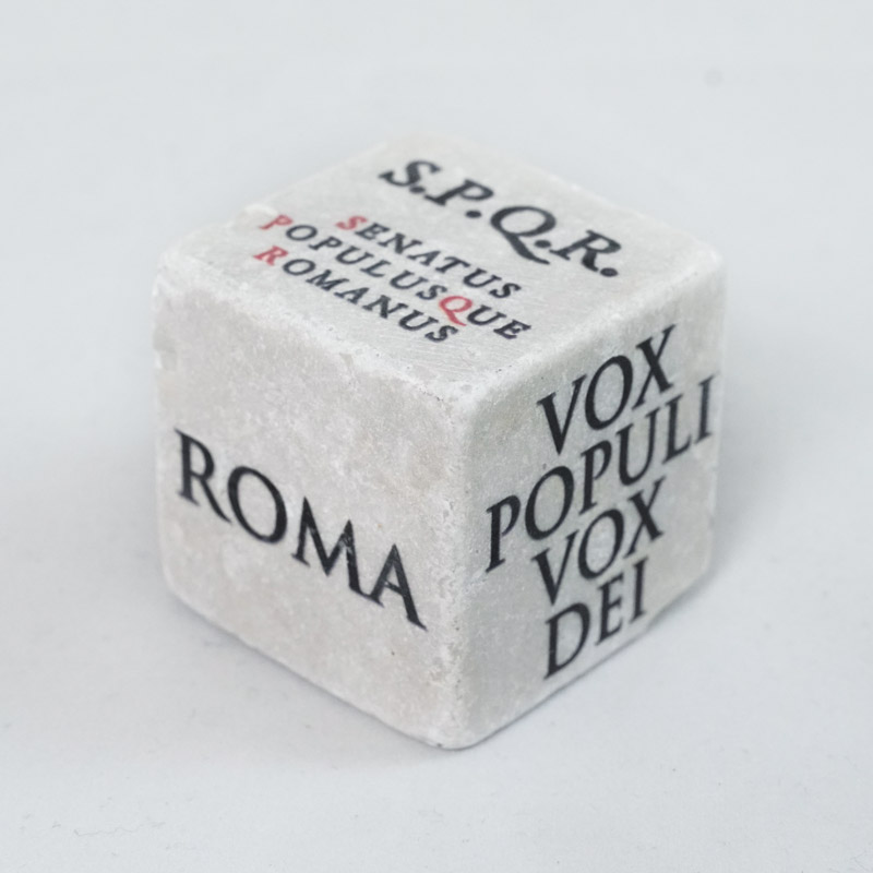 Dado in marmo italiano, souvenir di Roma, con scritte in Latino sulle facce